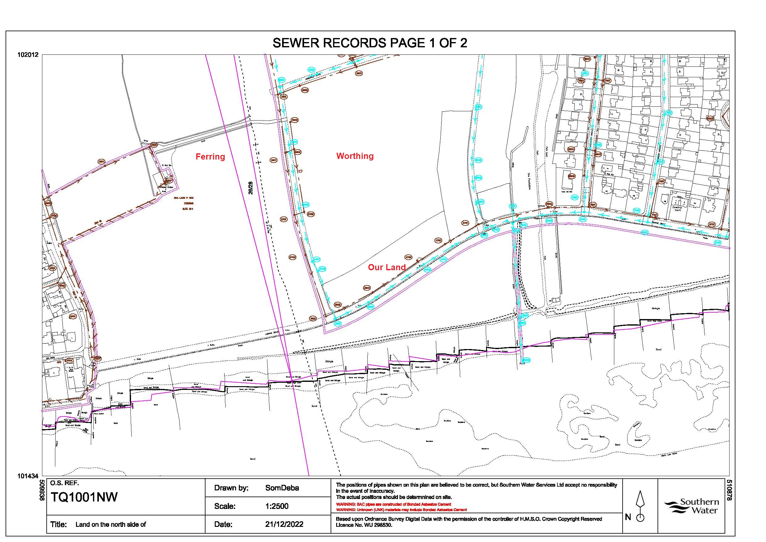 When Greensward was purchased by Worthing Council in 1936 there was a very specific clause relating to the laying of a sewer system and mains drains. There was is even a pumping station to the left of Amberley Drive (refered to as ESS Mast on the land registry documents).
